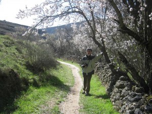 Por un sendero que discurre al lado del río y en el que apenas hay espacio para el río, el sendero, los álamos de ribera y unas paredes rocosas, verticales, impresionantes, de 60 a 80 metros de altura, donde hacen sus nidos los buitres leonados, las águilas, los cuervos, los quebrantahuesos y alguna otra especie que se me escapa, el silencio sólo roto por el graznido que te devuelve, en eco, los paredones laterales y que se mezcla con el murmullo del río y con las esquilas lejanas de las ovejas que pastan en lo alto, y te envuelve y te transporta y te conquista… ¡Qué buena cura anti estres y qué maravilloso y majestuoso el vuelo de los buitres…!